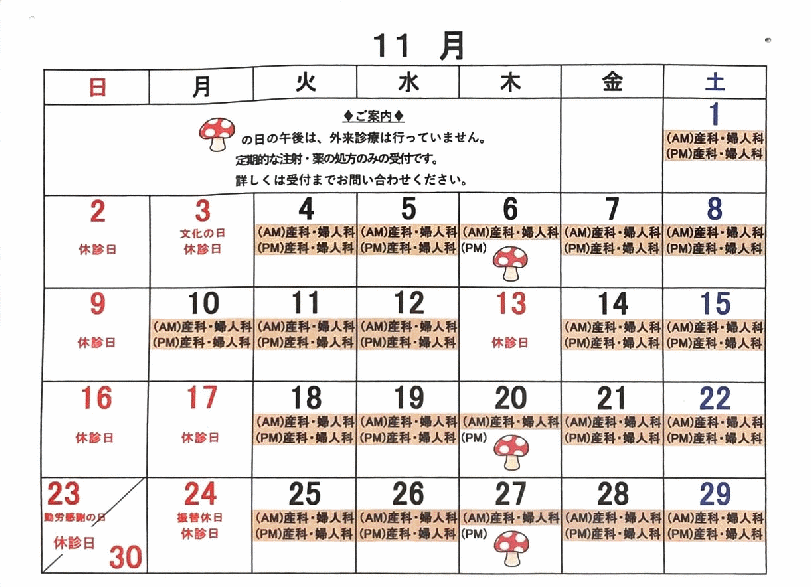 11月・12月のカレンダーは医院の窓口で配布しております。お受け取りください。