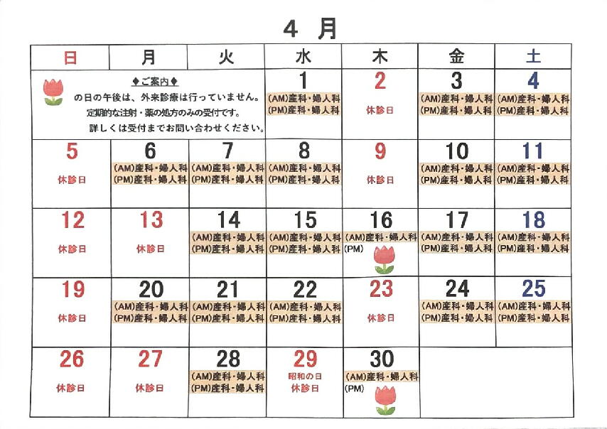 03月・04月のカレンダーは医院の窓口で配布しております。お受け取りください。